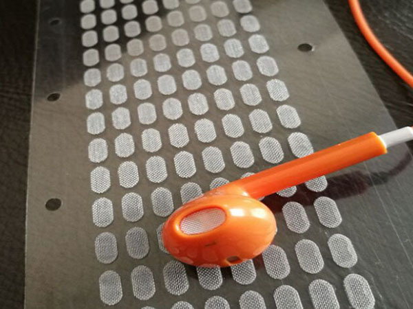 各种品牌手机喇叭防尘网,规格为40-500目,颜色有:黑色、银色、白色、红色、金黄色、橙色、蓝色等各种颜色,可以用刀模冲制成各种形状,周边可以带双面胶,操作简便省时。现有多种组合模具(φ9.2*φ6.8、φ14.3*φ9、φ10.2*φ7、φ35*φ29、φ25*φ20、φ5.5*φ3.5、φ4.5*φ3.5、φ4*φ2)能够更快、更方便打样、长期有现货供应。