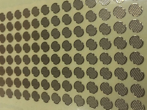 各种品牌手机喇叭防尘网,规格为40-500目,颜色有:黑色、银色、白色、红色、金黄色、橙色、蓝色等各种颜色,可以用刀模冲制成各种形状,周边可以带双面胶,操作简便省时。现有多种组合模具(φ9.2*φ6.8、φ14.3*φ9、φ10.2*φ7、φ35*φ29、φ25*φ20、φ5.5*φ3.5、φ4.5*φ3.5、φ4*φ2)能够更快、更方便打样、长期有现货供应。