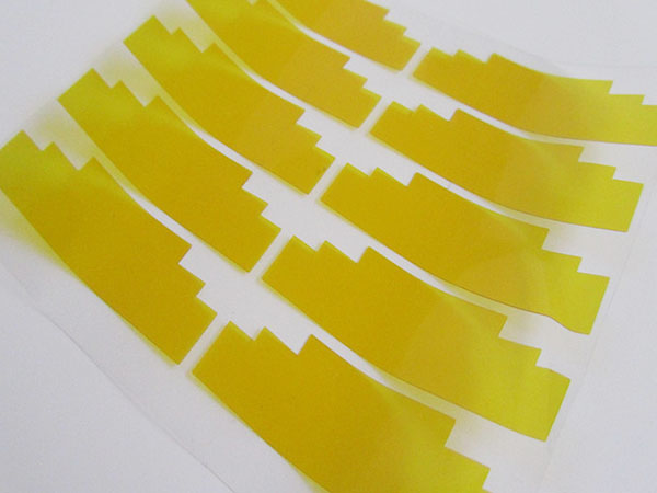 金手指胶带又称Kapton胶带或聚酰亚胺胶带,该胶带以聚酰亚胺薄膜为基材,单面涂布高性能在机硅压敏胶,有单面氟塑离型材料复合或不复合两类材料。涂布高精度达到±2.5um,无刮痕,拉丝等现象,剪切性佳,易冲型模切加工,具有优异的耐高温性和耐溶剂性能。